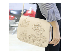 激光加工是利用高能量密度的激光對加工件部件進行照射,極細的激光光束如同刀具,可對材料進行切割,及表面處理:如打出各種文字、符號和圖案,以及鏤空打孔等,大小可以從毫米到微米。其最大的優勢是:非接觸性加工,不會損壞被加工物品;并且圖案精細,可以完成其他加工方式無法實現的工藝,大大提高了皮鞋及箱包的產品競爭力。