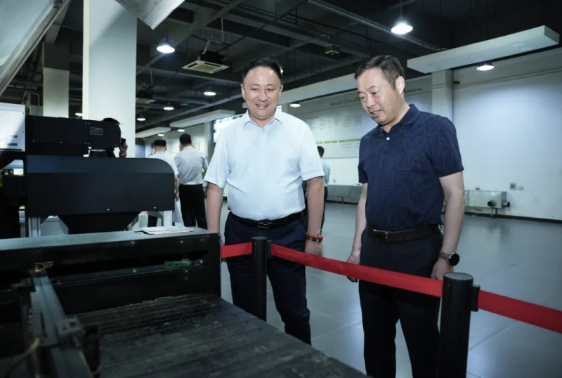 在卓總的陪同下,范德珩縣長一行先后走進大族粵銘激光設備展示廳、激光設備制造總裝車間和激光技術研發實驗室,對集團的產品布局、生產制造實力、自主研發實力等進行全面調研考察。集團先進智能的激光設備、前沿的激光加工工藝和現代化的激光設備制造場景,給范德珩縣長等領導一行留下了深刻印象。特別在獲悉大族粵銘激光在汽車制造、3C電子精密制造、新能源、船舶工業、工程機械、農業機械等高端裝備制造領域取得的成果后,范德珩縣長為大族粵銘激光的強大實力連連稱贊,并給予了高度評價。