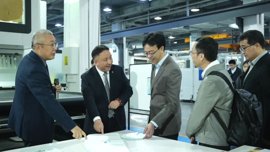2月13日,江蘇省睢寧縣人民政府縣長楊遠朝同志、睢寧縣人民政府副縣長陳永同志、睢寧縣財政局局長張磊同志、睢城街道黨工委書記劉瑞峰同志、睢寧縣商務局局長高亢同志等領導一行,蒞臨廣東大族粵銘激光集團股份有限公司東莞松山湖研發及生產制造基地考察調研,大族粵銘激光集團執行董事兼總經理卓勁松先生、粵銘激光集團副總經理王軍先生等公司領導熱情接待并全程陪同參觀交流。