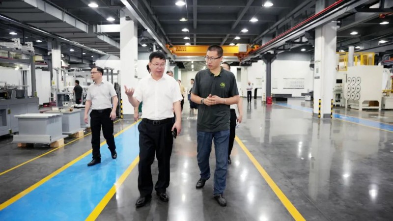 在卓銳副總經理的陪同下,吳阿明副主任等領導一行先后走進大族粵銘激光智能激光裝備展示廳和激光設備制造總裝車間,對集團在高端產品規劃、數字化生產制造能力、全技術生態自主研發實力等進行了全面調研。考察期間,卓副總向吳副主任重點匯報了大族粵銘激光在汽車安全系統制造、3C電子精密制造、航空航天、風電和水電能源、船舶制造、工程機械、農業機械、礦山機械、鈑金加工、鋼結構、家具制造、制衣、制鞋等先進制造領域的產品線布局和技術創新優勢,以及全球市場發展戰略等情況。