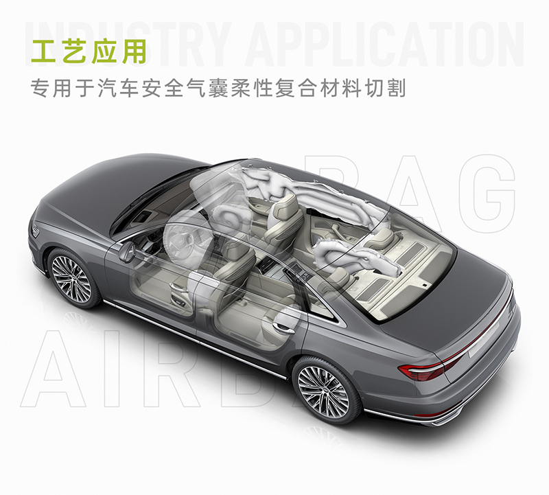 依托在激光智能裝備及汽車制造領域20余年的技術積淀與行業深耕,大族粵銘激光精準把握汽車被動安全產業的發展趨勢,圍繞安全氣囊制造關鍵工藝環節,推出了系統化、模塊化的汽車被動安全激光加工整體解決方案。該方案覆蓋從裁剪、切割、弱化到涂膠等多個核心工序,形成完整的裝備體系,主要包括汽車安全氣囊雙頭異步激光裁床系統、汽車安全氣囊單頭激光切割系統、OPW汽車安全氣囊激光飛行切割系統、汽車安全氣囊智能涂膠系統以及汽車安全氣囊腔體激光弱化系統等核心裝備。