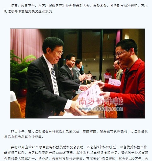 •     萬江重金獎勵科技創新企業   -   2010-10-07