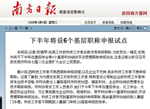 •     《南方日報》粵銘設為職稱申報試點   -   2010-10-15