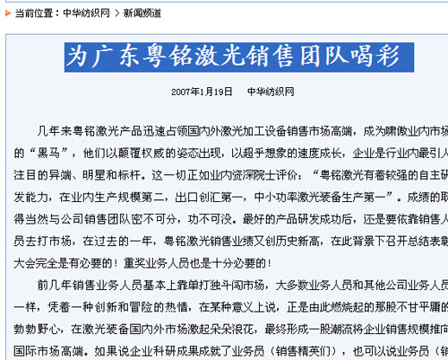 •     為廣東粵銘激光銷售團隊喝彩   -   2010-10-07