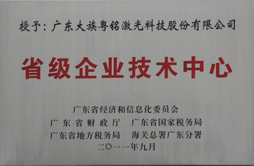 廣東省經(jīng)濟(jì)和信息化委員會、省財政廳、省國稅局、省地稅局、海關(guān)總署廣東分署根據(jù)貫徹提高自主創(chuàng)新能力,建設(shè)創(chuàng)新型國家的戰(zhàn)略部署,制訂省級企業(yè)技術(shù)中心訂定評審辦法。省經(jīng)信委牽頭省五部門聯(lián)合評審認(rèn)定:廣東大族粵銘激光科技股份有限公司為“省級企業(yè)技術(shù)中心”。