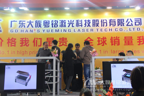 大族粵銘激光攜CMA-1325 廣告行業專用板材激光切割機、CMA-4030 桌面式激光雕刻機、CMA6040K電動升降工作臺激光雕刻機、FLM-20P 便攜式光纖激光打標機、CMA1390通用激光切割機(130W)、CMA1390C激光切割機、CMA1610A激光切割機、MC150-DLG激光打標機等眾多先進激光設備亮相展會。