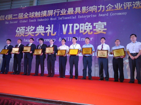 2014年6月9日,2014第二屆全球觸摸屏行業(yè)最具影響力企業(yè)評(píng)選頒獎(jiǎng)典禮暨VIP晚宴在深圳隆重舉行。此次評(píng)選活動(dòng)吸引了全球超過(guò)3000多家企業(yè)參與,夏普、三星顯示、英特爾、歐菲光、華為、聯(lián)想、Applied Materials、東遠(yuǎn)、
