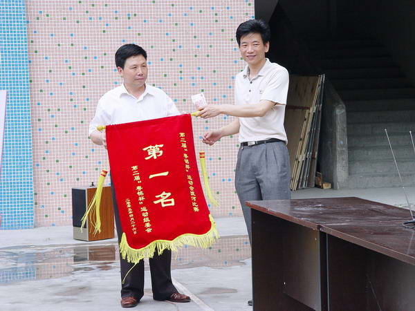 為撥河比賽第二名頒發(fā)集體榮譽(yù)錦旗