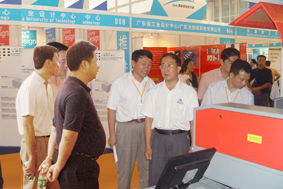 2005 年東莞國際科技合作周上,萬江區委書記陳志超帶領區幾大領導班子成員,親臨粵銘激光展位,視察粵銘激光科技成果,親切看望科技人員,勉勵企業加大科技投入,加快企業發展步伐,乘市委,市府大力發展“科技東莞”東風,把握好的機遇。企業如果有困難需要區委、區府協助的,作為區領導絕不會推辭,一定給予企業最大的關心和支持。企業對市、區二級領導的關懷備感親切,決心將科技創新工作做得更好,不辜負關心支持粵銘激光發展的各級領導殷切希望。
