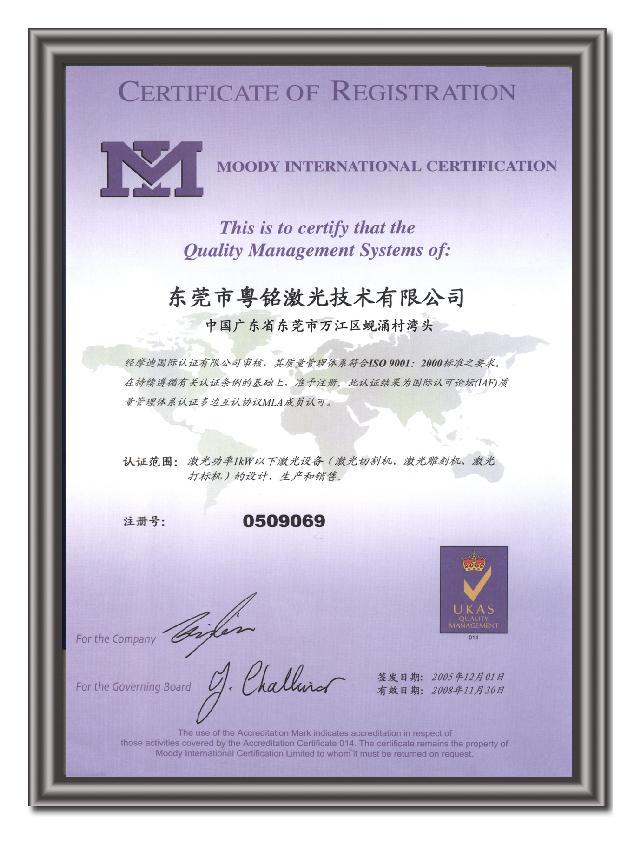 近日,摩迪國際認證公司對粵銘激光 ISO9001 : 2000 質量保證體系,進行全面認證評審,認為粵銘激 ISO9001 : 2000 系統工作運行有效,完全符合 ISO 標準,一次性通過認證驗收,同時頒發證書。質量是生產和生活中一個永恒的的話題 , 也是本世紀全球經濟發展的主題之一。隨著時代的發展,科學技術水平的提高和人類對客觀事物認識加深,質量不斷賦予新的生命和使命。當今世界市場的竟爭,當然更重要的是質量的竟爭,產品質量是企業生存之本。隨著世界經濟一體化不斷深入,及市場竟爭的日益激烈,眾多企業通過 ISO9001:2000 版國際質量體系的認證,按照質量體系標準要求進行產品質量管理。 ISO900 族質量管體系標準源于英國標準 SD5750 。為了在質量領域推廣這一行之有效的管理方法,國際標準化組織的專家和該組織的成員經過卓有成效的工作,于 1987 年推出首版ISO900 族標準,即 ISO900 : 1987 年系列標準。自此,ISO900族標準在歐洲、美洲、亞洲及全球逐步推廣開來。這種質量管理模式在給企業注入新的生機和活力同時,也隨著全球經濟一體化和標準自身的需要而不斷的發展和完善。 1994 年推出新版 ISO900 族,增加到 20 個質量管理要素。目前 2000 版 ISO900 族在標準構思和標準目的方面出現了具有時代特征的變化 , 過程方法概念、顧客需求的考慮及持續改進的思想貫穿于整個標準之中, 2000 版質量管理體系包含著四個重要組成部分:一、管理職責,二、資源管理、三、過程管理、四、測量分析與改進。 粵銘激光通過 ISO9001:2000 工作推行,嚴格按照品質控制程序工作。在以顧客為觀注焦點、設計和開發的質量控制、生產和服務的提供、過程質量控制、全員參與、持續改進、不合格品控制均取得一定的成效。同時,公司管理水平明顯得到提升。 客戶滿意度達到99.05%,使得企業銷售業績占據業內市場高端,粵銘激光ISO9001 : 2000 體系運作起到重要作用!