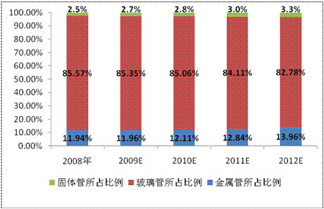 2008年—2012年我國(guó)中小功率激光切割加工設(shè)備產(chǎn)品結(jié)構(gòu)變化趨勢(shì)如下圖所示: