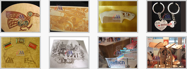 非金屬材料 如:雙色板、木板、竹片、有機玻璃、皮革、布料等材料上刻制各種圖形及文字。