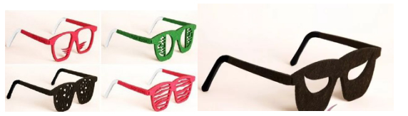 擺個Pose,做個造型,拋個眼神,盡情享受來自Nono Muaks的玩樂眼鏡吧!它們沒有鏡片,時髦的羊毛氈經過羊毛氈激光切割機處理確變得堅挺起來,輕巧柔軟卻無比柔韌,是您展現生活態度的不二選擇,還有為特別主題訂制的特別造型呢。