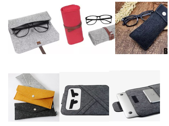 經過羊毛氈激光切割機制成的羊毛氈能夠用于制成各種眼鏡盒、iPad保護套、收納包等。