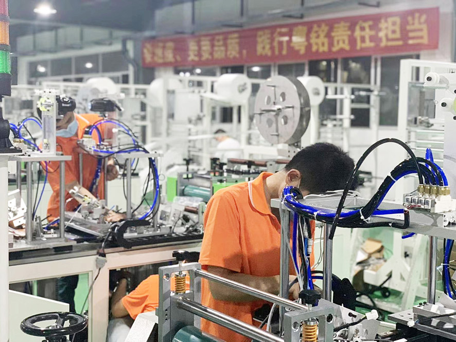 之后,隨著海外新冠疫情的迅速蔓延,尤其是歐美各國淪為疫情重災區后,東莞口罩機廠家大族粵銘集團包括一拖一全自動平面口罩機、N95/KN95頭戴式口罩機、N95/KN95全自動折疊口罩機在內的各系列口罩機也“飄洋過海”,迅速出口到了美國、英國、德國、意大利、土耳其、印度、巴西等國家,緩解了當地企業口罩生產能力不足的燃眉之急。