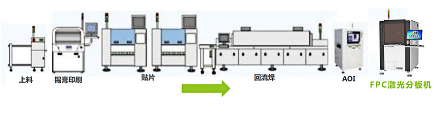新一代的激光分板機(jī)配備高精密、多功能、多加工平臺(tái),實(shí)現(xiàn)了各類電路板、線路板、軟硬板、覆蓋膜等產(chǎn)品的精密切割,尤其是應(yīng)對(duì)扇形,圓形,半圓形,異形,多邊形,矩形及不規(guī)則板形,進(jìn)行分板時(shí)尤為突出。自主研發(fā)的專業(yè)激光分板軟件,可靈活對(duì)接SMT流水線,真正實(shí)現(xiàn)激光切割自動(dòng)化生產(chǎn)線作業(yè)。