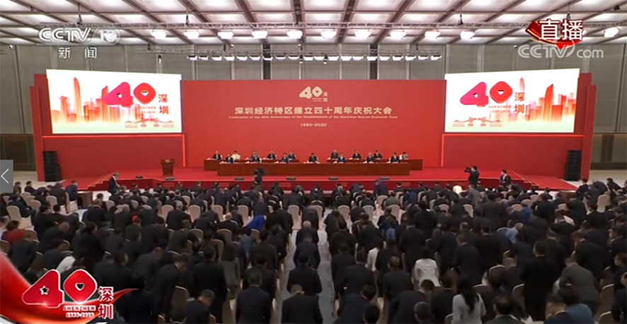 2020年10月14日上午,深圳經(jīng)濟特區(qū)建立40周年慶祝大會在深圳隆重舉行。中共中央總書記、國家主席、中央軍委主席習近平出席大會并發(fā)表重要講話。
