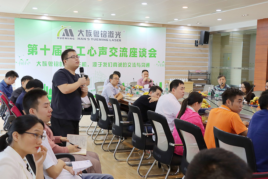 “我非常欣喜地看到各位員工代表都能以主人翁的精神關心公司的經營和發展。我也是從基層一步步做起來的,作為一線員工,你們能看到很多我看不到的問題,希望你們多提寶貴意見,公司對大家提出的很多有思想、有價值的意見和建議高度重視,會后會認真梳理推進,逐條改善。公司為企業未來的高速健康發展規劃了非常優質寬闊的人才發展通道,現在在粵銘激光集團工作的年輕人,在你們面前充滿了很多的發展機會。希望大家在粵銘這個事業大舞臺上開心工作、幸福生活、學習技能、收獲友誼,不斷提高自己的各項綜合能力。”--卓總在會議的最后總結時說。