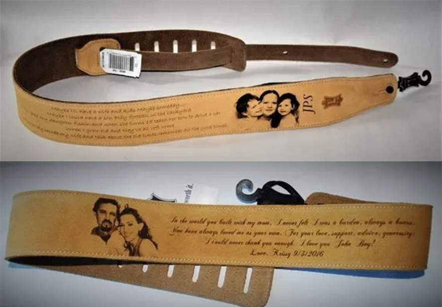 非接觸性的皮革激光雕花機不會損壞吉他背帶,無機械變形和產生內應力。無論是正面或是背面,皮革激光雕花機都不在話下,加工后的皮革自身質感絲毫不減。