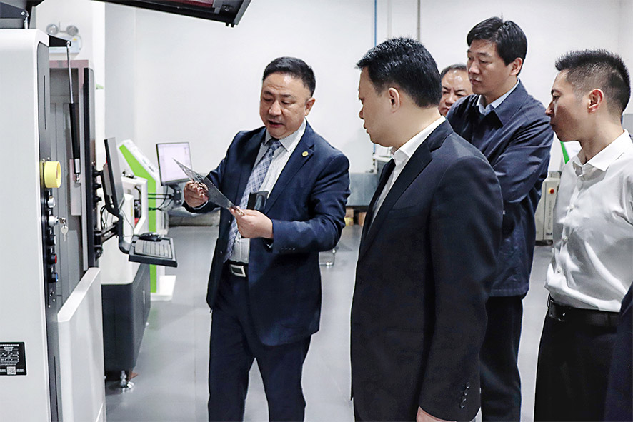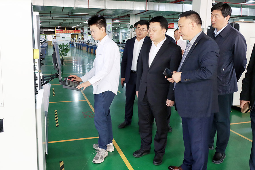 在卓勁松總經(jīng)理的陪同下,蘇偉書記及縣委和縣政府的其他領(lǐng)導(dǎo)觀摩了粵銘激光集團(tuán)現(xiàn)代化智能制造總裝車間、研發(fā)中心與激光設(shè)備展示廳,對(duì)我司近年來(lái)布局3C、5G、新能源汽車、制衣制鞋、家具家居等行業(yè)各系列高端激光裝備的技術(shù)亮點(diǎn)及生產(chǎn)流程進(jìn)行了實(shí)地考察了解。