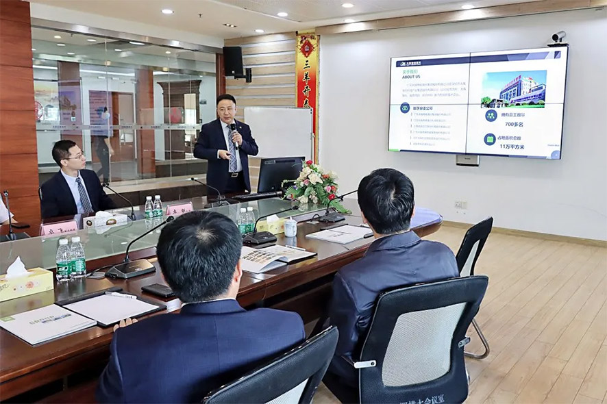 在座談會(huì)上,雙方進(jìn)行了深入地交流探討。卓總首先對(duì)蒞臨粵銘激光集團(tuán)的蘇書記一行領(lǐng)導(dǎo)表示熱烈的歡迎,并重點(diǎn)介紹了集團(tuán)發(fā)展歷程、行業(yè)地位、產(chǎn)業(yè)布局和創(chuàng)新成果。