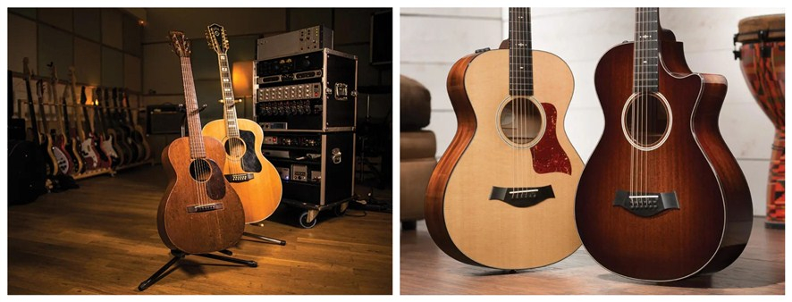 提起傳統木吉他,愛好玩吉他的人都會馬上聯想到頂級的兩大品牌:Martin(馬丁)和Taylor(泰勒)。兩者在吉他中的地位,相當于車中的法拉利與保時捷。