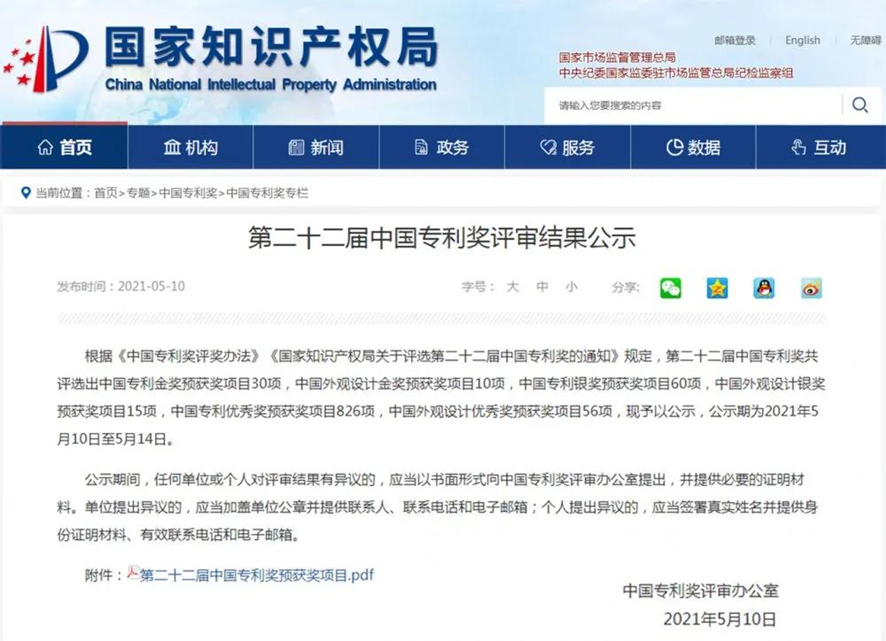 據(jù)了解,中國專利獎于1989年設(shè)立,與國家科技獎齊名,是由中國國家知識產(chǎn)權(quán)局和世界知識產(chǎn)權(quán)組織共同主辦的中國專門對授予專利權(quán)的發(fā)明創(chuàng)造給予獎勵的政府部門獎,受聯(lián)合國世界知識產(chǎn)權(quán)組織(WIPO)的認(rèn)可。這是我國政府部門針對專利領(lǐng)域設(shè)立的唯一國家級政府獎項(xiàng),也是專利行業(yè)的最高獎項(xiàng)。該獎項(xiàng)重在強(qiáng)化知識產(chǎn)權(quán)創(chuàng)造、保護(hù)、運(yùn)用,推動經(jīng)濟(jì)高質(zhì)量發(fā)展,鼓勵和表彰為技術(shù)(設(shè)計)創(chuàng)新及經(jīng)濟(jì)社會發(fā)展做出突出貢獻(xiàn)的專利權(quán)人和發(fā)明人(設(shè)計人)。