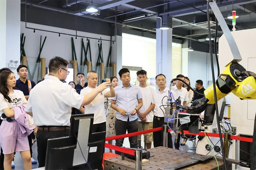 在王營錚總監的陪同下,來訪的企業家代表一行參觀了粵銘激光集團現代化智能制造生產中心、研發中心與激光設備展示廳。在參觀的過程中,王總詳細介紹了我司各系列高端激光裝備的技術亮點及其應用領域。先進的激光工藝、前沿的激光應用和現代化的智能生產車間給來訪的企業家代表們留下了深刻的印象,并與王總探討激光在各自領域的用途,及其先進性。