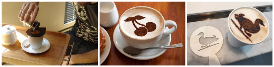 將可可粉或肉桂粉等撒在激光鏤空區域