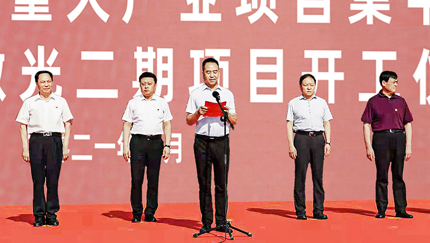 致辭結束,恰逢吉時,現場迎來激動人心的時刻,在眾人矚目中,中共江蘇省睢寧縣委書記蘇偉同志隆重宣布大族粵銘激光集團睢寧生產基地二期產業園擴建項目正式啟動。