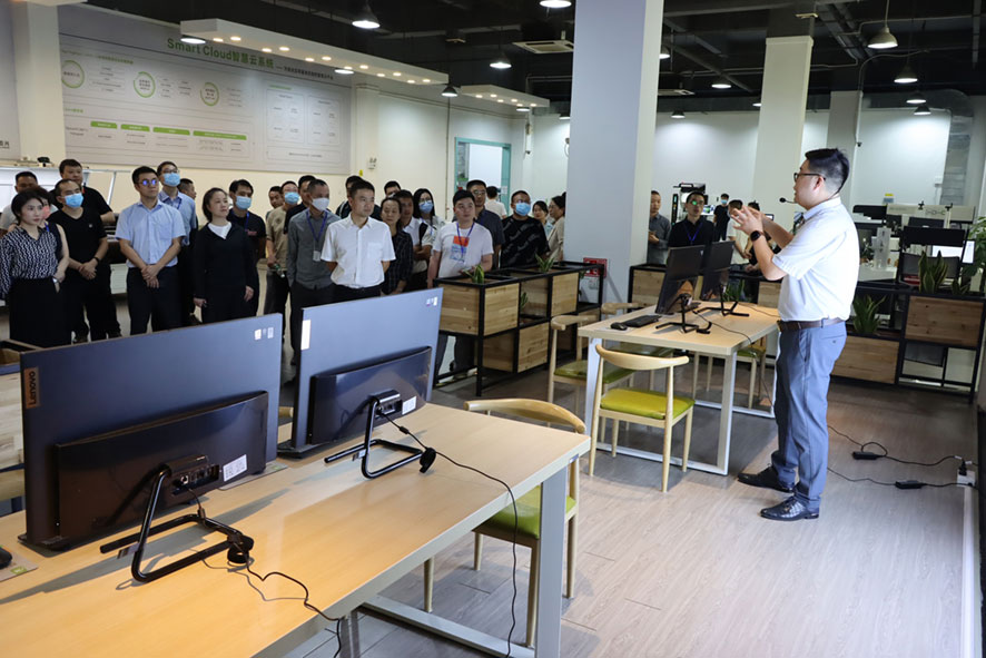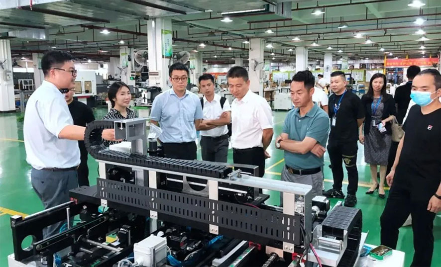 10月12日下午,參會嘉賓們實地參觀了大族粵銘激光集團(tuán)現(xiàn)代化智能制造生產(chǎn)中心、研發(fā)中心與激光設(shè)備展示廳,在參觀的過程中,王營錚總監(jiān)詳細(xì)介紹了我司制鞋領(lǐng)域各系列高端激光裝備的技術(shù)亮點及優(yōu)勢,并就嘉賓們提出的問題進(jìn)行了現(xiàn)場交流。