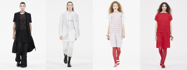 尼古拉安德烈塔拉里斯(Nicolas Andreas Taralis)使用激光切割工藝在外套、T恤、直筒連衣裙上剪裁出鏤空模式,切口光滑無毛邊,不禁讓人聯想到這不是一件衣服而是一件保護軀殼套。