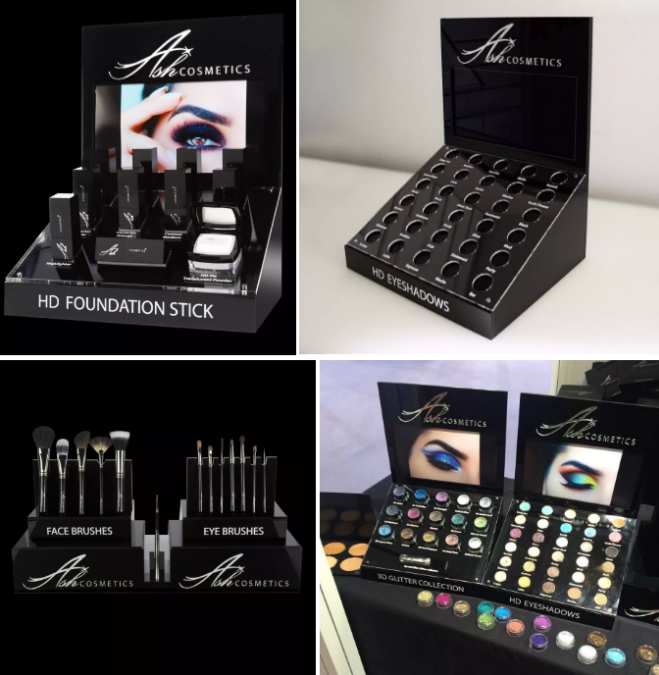 Ash Cosmetic為了制作出能夠展現自身產品品質效果的展示架,采用與數控系統結合的展示架激光切割機。在電腦上制作出品牌商標的圖紙后,激光切割機就能在銀色亞克力玻璃上面切割出想要的規格尺寸的圖形。