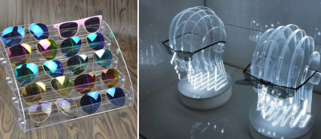 利用非接觸性的激光切割工藝對亞克力進行加工,不會壓壞材料,展示架激光切割機能依據產品的特點設計制作出多種款式,充當“無聲的推銷員”,促使消費者進行直接的視覺交流,引發其消費行為。