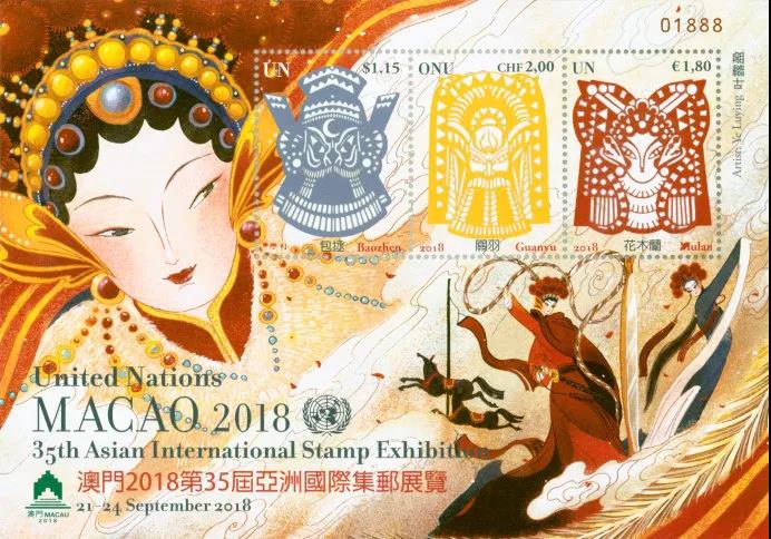 采用以粵劇為圖案題材的小全張,糅合無接觸性的郵票激光打孔機裁剪出包拯、關羽、花木蘭三個人物。由于激光鏤空對郵票無直接沖擊和機械變形,制作出的臉譜剪紙風格系列郵票精致細膩。