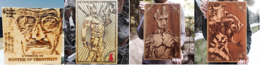網友們將斯坦·李與他漫畫下的英雄人物,采用非接觸性的工藝品激光雕刻機永久地鐫刻在硬木上,讓原本冰冷的木材也帶有情感。