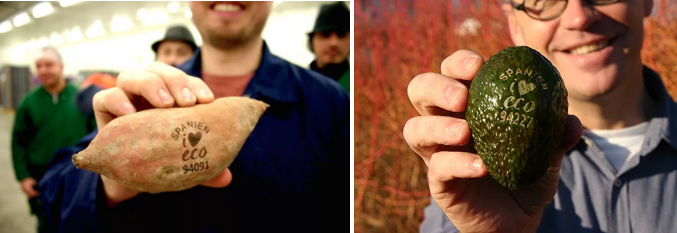 意大利果蔬生產商和貿易商之一的AgricolliBio公司同樣地使用了激光打標工藝。激光打標工藝在個性化設計、食品安全追溯性、增加產品附加值等都有優勢,節約了標簽紙成本的同時,也降低了標簽紙對環境的影響,降低碳排放量。