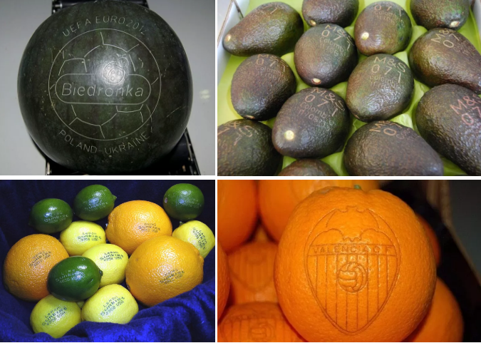 荷蘭水果蔬菜供應商Nature&More聯合瑞典超市ICA也采用激光打標工藝,在電腦上制圖后,食品激光打碼機就能按照圖紙在果蔬表皮進行加工,消去表皮上的色素從而形成圖文,不僅解決超市中果蔬產品商標錯貼誤貼現象,同時杜絕了篡改日期的可能。