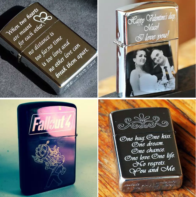 激光打標的應用范圍廣泛,不受加工材料的顏色、形狀、數量等因素的限制,多種物質上均可打上永久性標志,標刻效果精致細膩,經過打火機激光打標機加工后的打火機在帶有高功能性的同時,兼具精美和格調。