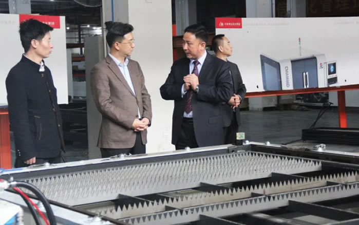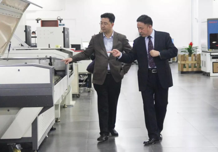 首先, 在卓總的陪同下,中共太倉市委徐志強常委一行實地參觀了我司產品展示廳、生產車間,全方位了解我司發展概況及激光技術成果。中共太倉市委徐志強常委一行對大族粵銘集團創新性的激光產品均表現出了濃厚的興趣,尤其對高端激光裝備更是贊譽有加。