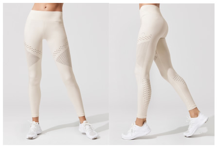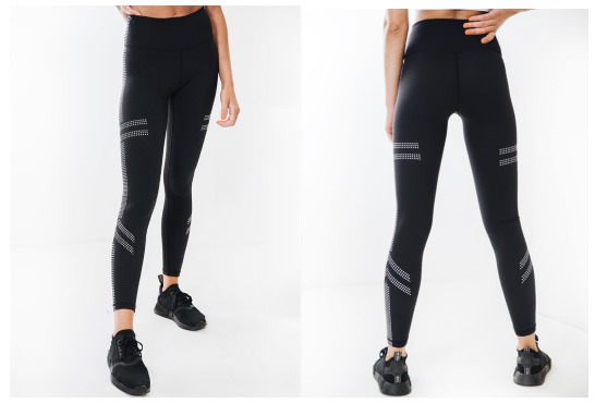 緊身褲腿側(cè)有激光切割圓點組成的豎條紋,