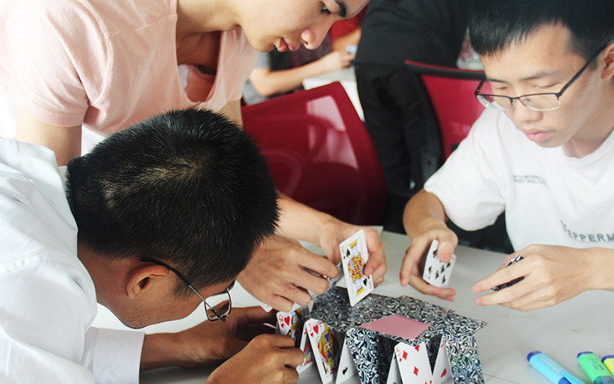 從“搶數(shù)報名”中,懂得錯了就要勇于接受懲罰;從“不倒森林”中,領悟團結合作會讓團隊走的更穩(wěn);從“巧壘紙牌”中,明白堅實的基礎會讓團隊站的更高;同事是競爭對手,也是合作伙伴。